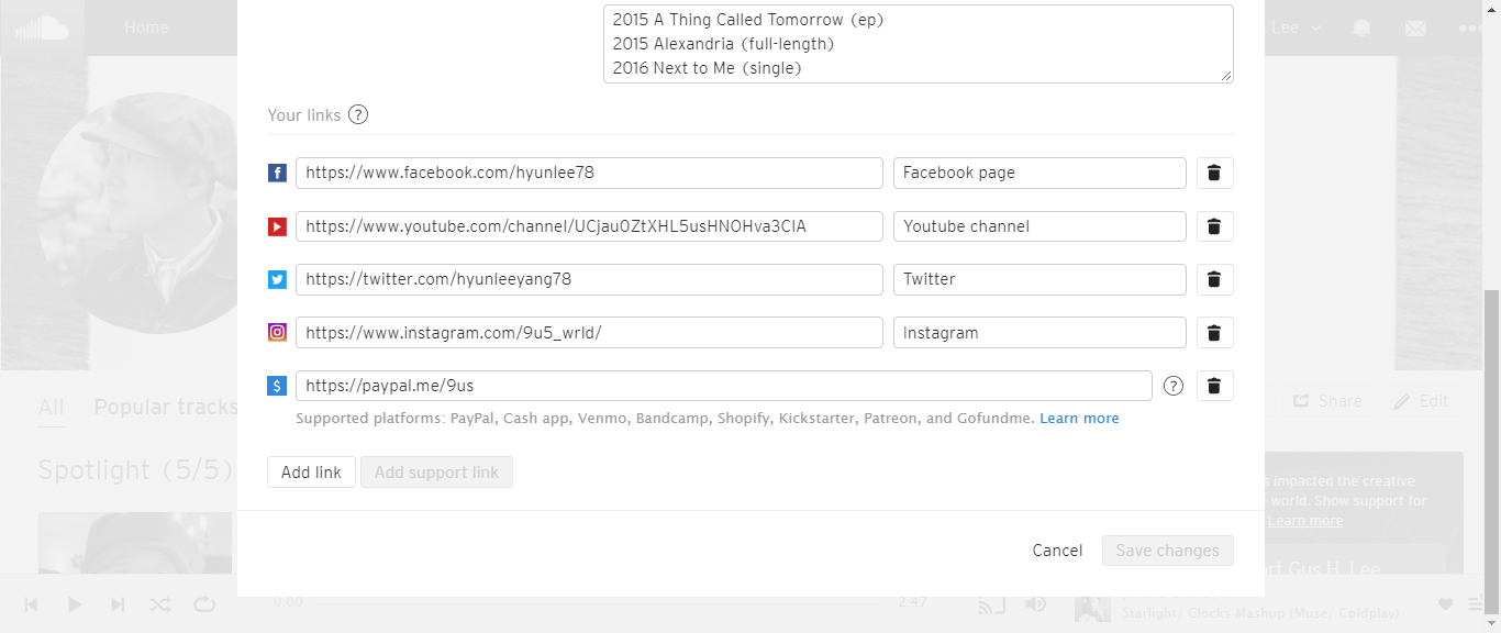 오늘은 사운드 클라우드 프로필 수정하는 방법에 대해서 알려드렸습니다.